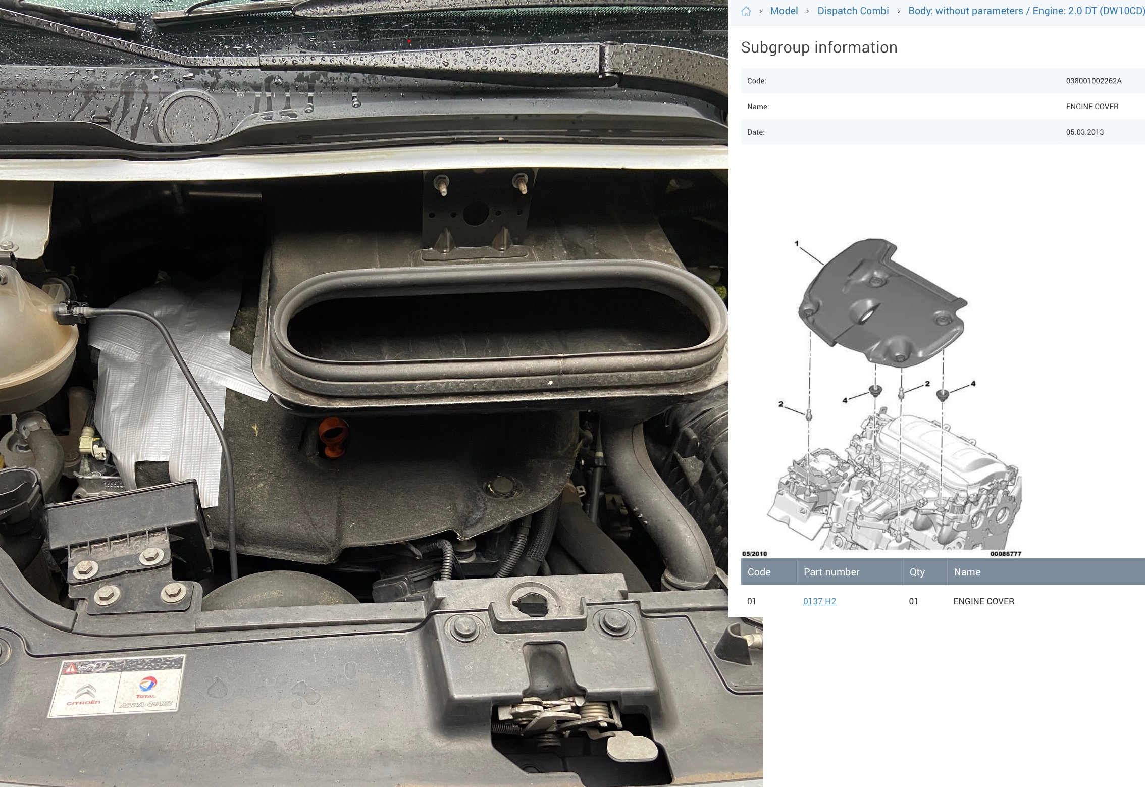 Motor afdekplaat over kleppendeksel voor Citroen DW10CD motor.#BR# Gemaakt van glas/rotswol.#BR# OEM-nummer: 0137 H2 | ||||||||||||||||||
