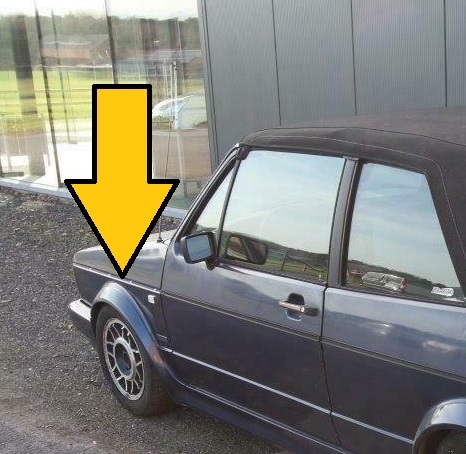 sierlijst spatbord bestuurderskant (zwarte, originele "brede" versie) van golf cabrio'tje | ||||||||||||||||||