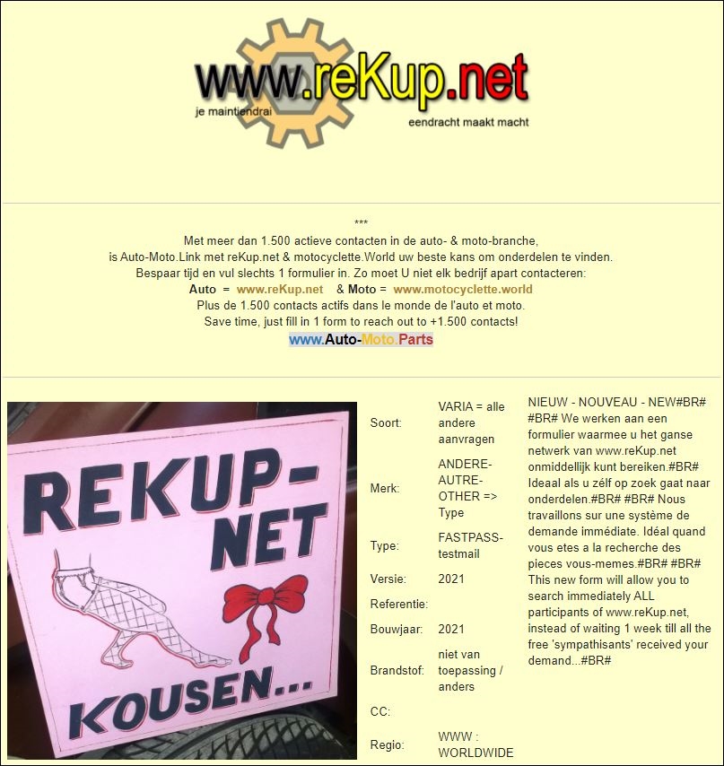 is Auto-Moto.Link met reKup.net & motocyclette.World uw beste kans om onderdelen te vinden.