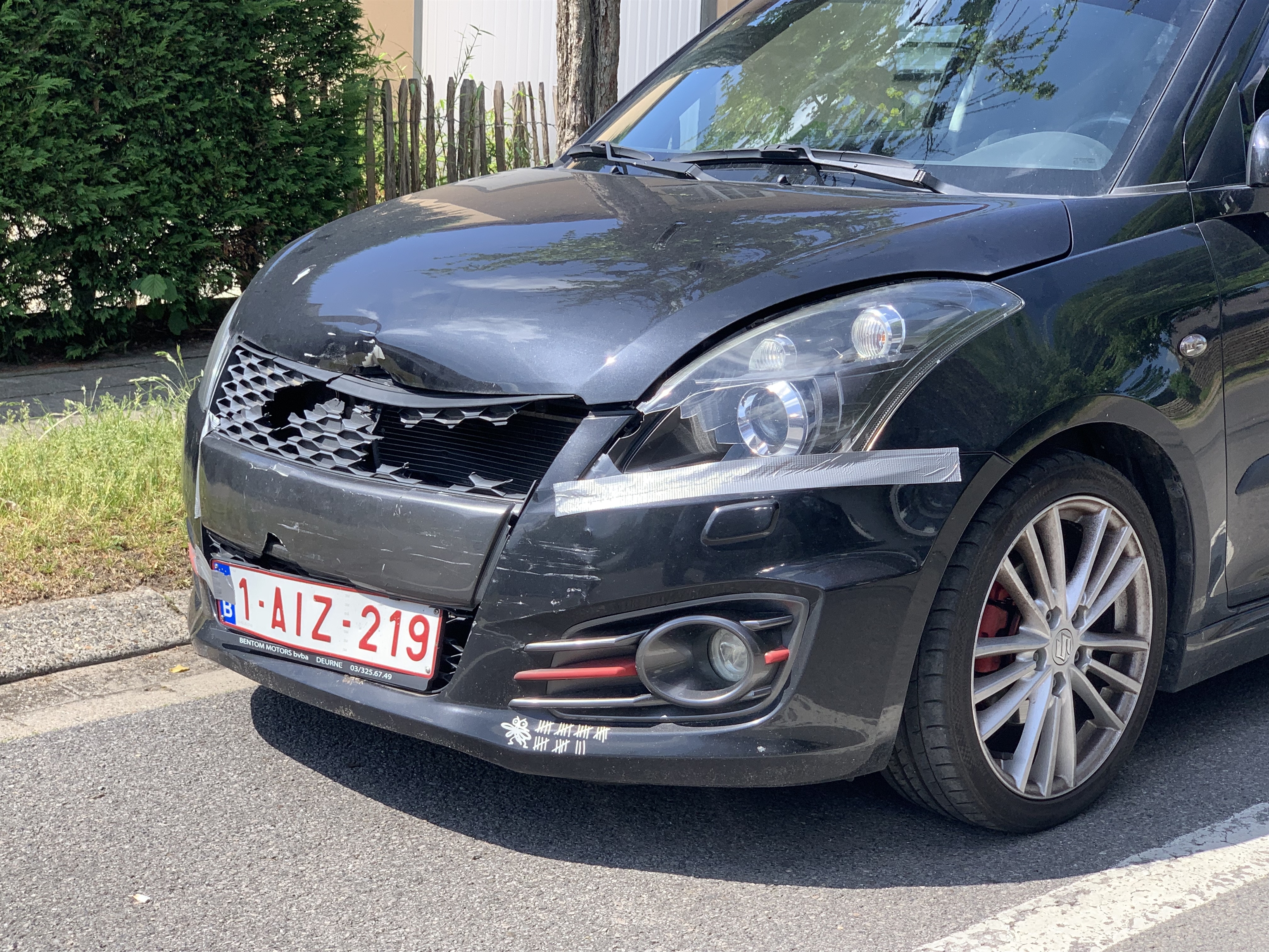 - [ ] Bumper (zonder grill) #BR# - [ ] Bumperbalk#BR# - [ ] Koplamp links#BR# - [ ] Motorkap#BR# #BR# Alles in zwarte kleur | ||||||||||||||||||