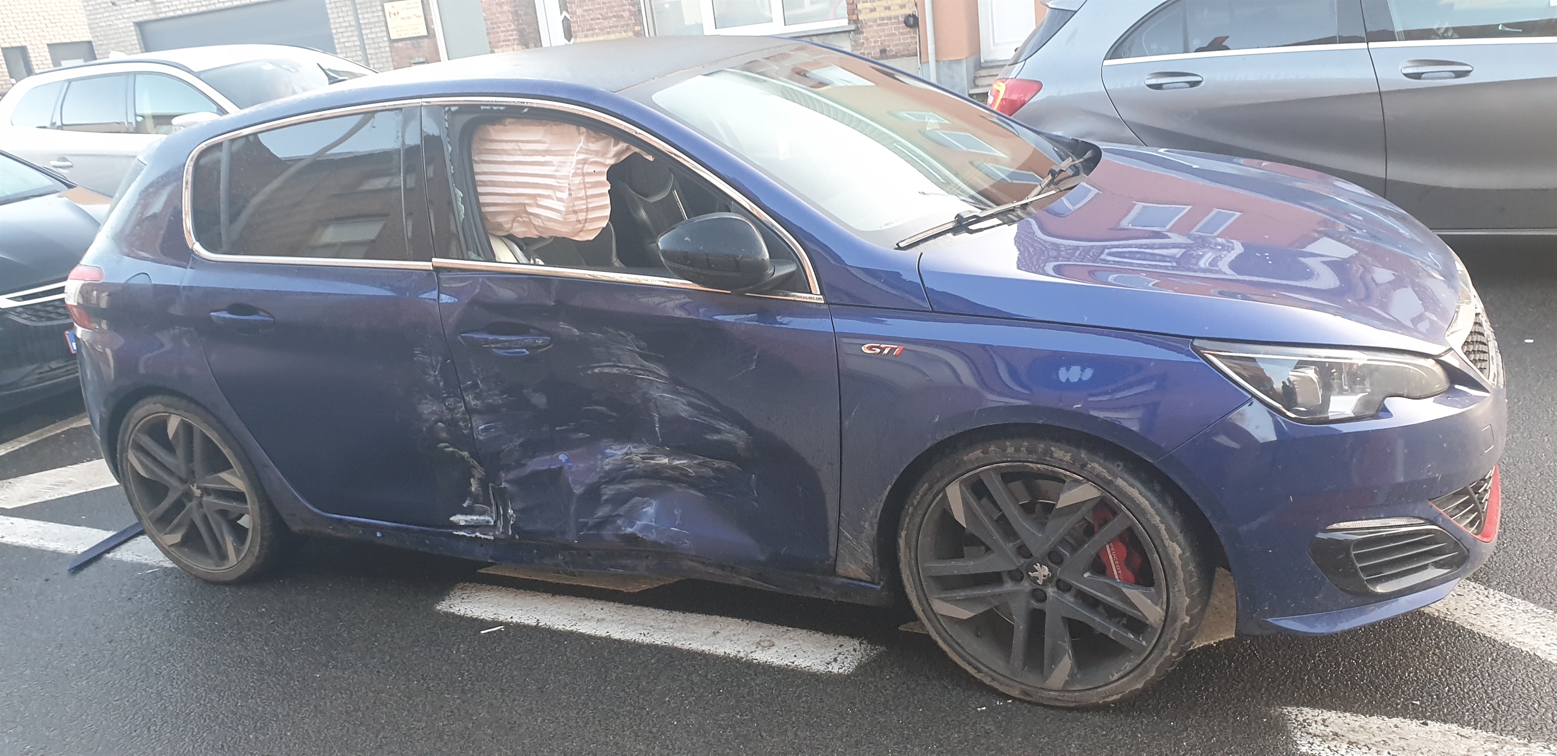 Deur passagierskant voor & achter ( volledig -> binnenbekleding, boksen, ruiten, mechanismes, spiegel, enz ). Drempel ( binnen & buiten over volledige lengte rechter kant ), airbags ( rechter kant boven ingewerkt in stijl), gordelSpanners ( bestuurder + passagier. | ||||||||||||||||||