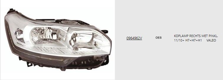 Gezocht koplamp rechts voor/phare droite halogeen 0964962V 6208V8 valeo/van wezel/.. | |||||||||||||||||||