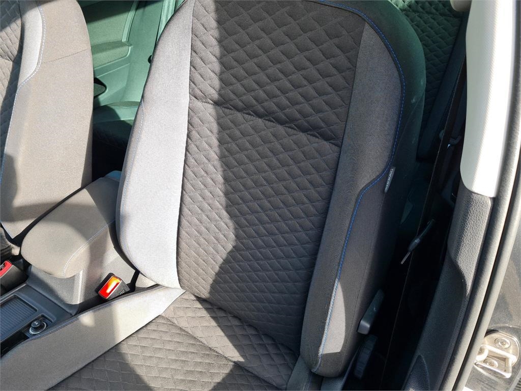 zetels volledig of enkel zitbekledingen 2xvoor- + achteraan in zwart/grijze stof met ruitmotief en blauwe stiksels#BR# #BR# Hemelbekleding, net en zonder schade parelgrijs#BR# #BR# Vloerbekleding net en zonder schade zwart#BR# #BR# hoedenplank zwart (alles hatchback 5-deurs)#BR# | ||||||||||||||||||